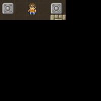 Use the arrow keys to move the boxes on the marked tiles, and then walk to the door. Good luck!